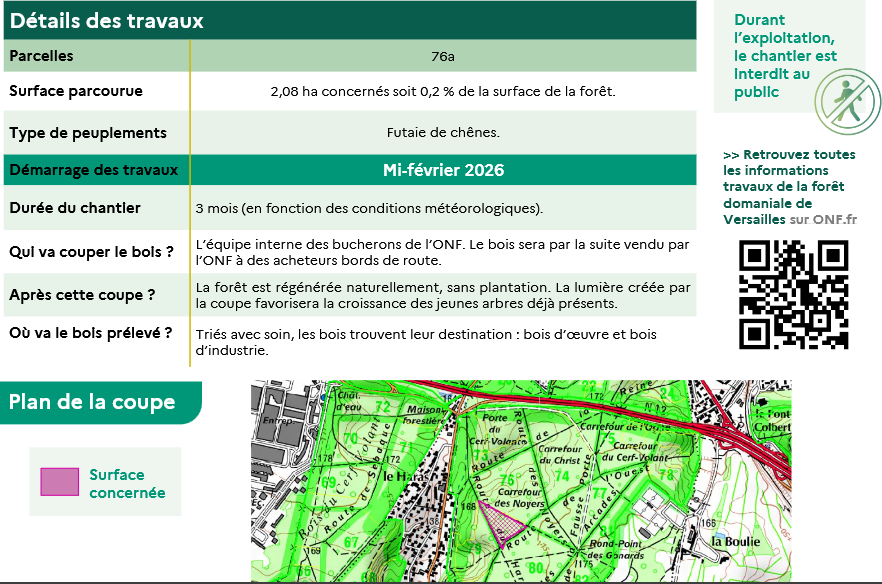 Une coupe secondaire programmée va démarrer prochainement en forêt domaniale de Versailles sur la parcelle 76a.