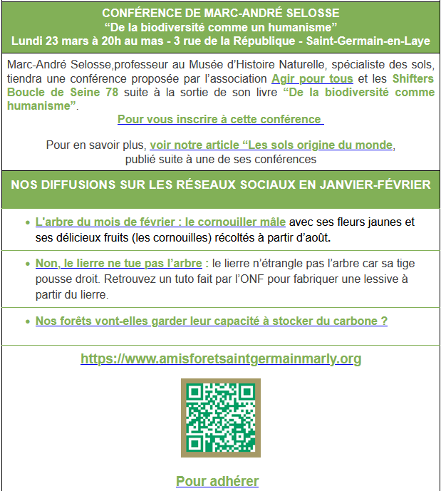 Nous sommes heureux de vous faire partager les activités proposées par Les Amis de la Forêt de St Germain et de Marly, Association membre d’YVELINES ENVIRONNEMENT :